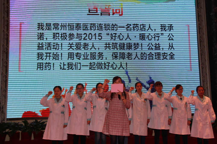 “好心人·暖心行公益活动”是药店圈首个公益捐赠类活动,由第一药店主办,浙江医药上海维艾乐健康管理有限公司协办,旨在呼吁全社会共同关爱老年人健康,尤其是心脑血管健康。恒泰人民(江苏)大药房连锁有限公司作为合作企业对活动给予了大力支持。首场启动仪式在江苏常州市金陵明都大酒店正式举行!小艾带大家步入启动现场看一看——